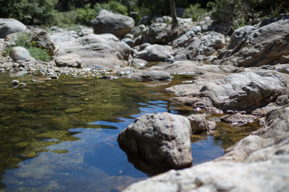 Puis l’on découvre le massif du Caroux, sauvage, secret, lumineux, sillonné de torrents qui créent avec leurs « marmites de sorcières » autant de piscines naturelles.
