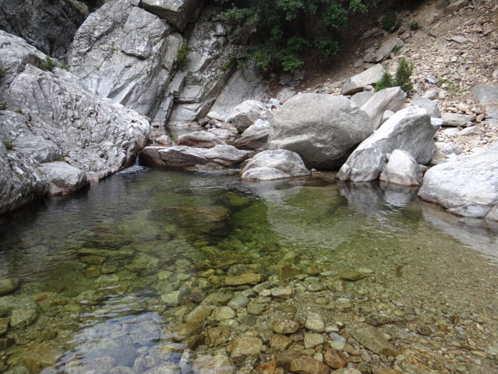 La fin de la randonnée traverse les impressionnantes et magnifiques gorges d’Héric , haut lieu de la « grimpe » dans cette partie du Sud, et ses nombreuses piscines naturelles creusées parle torrent.